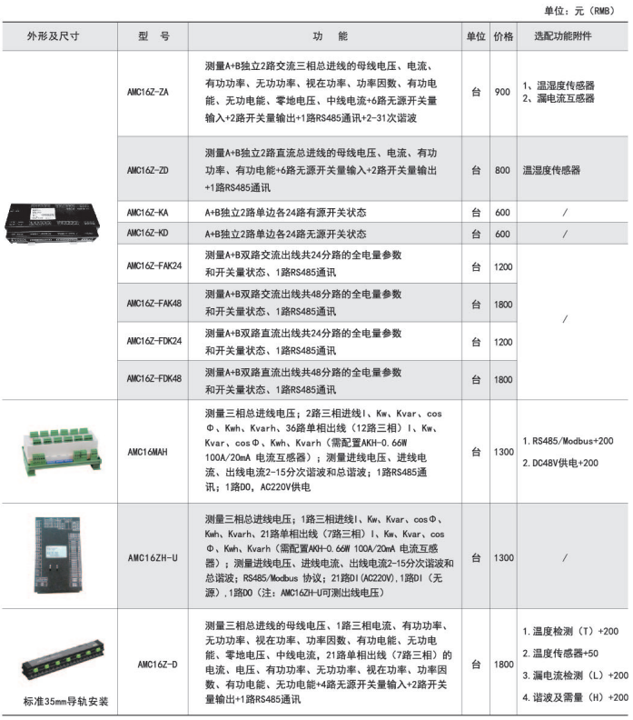 AMC16B多回路監(jiān)控裝置2. AMC16系列數(shù)據(jù)中心能耗監(jiān)測裝置