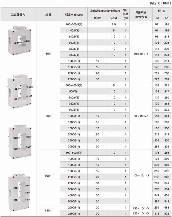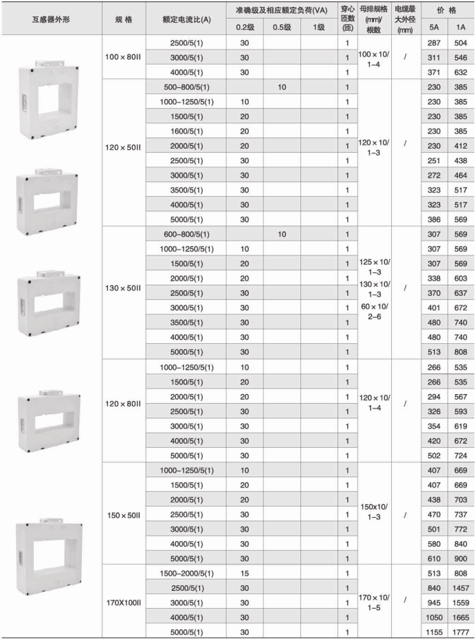 該系列互感器作為交流電流信號采集元件,可與測量儀表配套使用,一次電流測量范圍5-6300A,二次輸出5A或1A,測量范圍為額定值的5-120%。應用范圍: