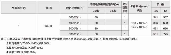 130×50Ⅱ | 600-800/5(1) | 10 | 1 | 125×10/1-3 130×10/1-3 60×10/2-6 | |||