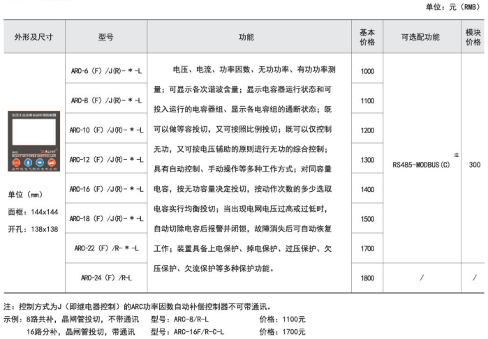 具體型號:ARC-6/J-KT共補型外形及尺寸