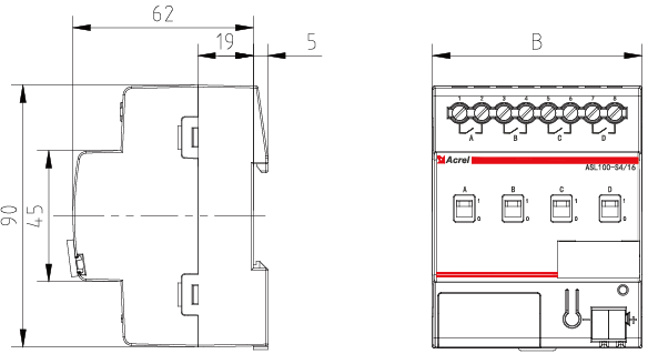 產(chǎn)品型號(hào) | 模塊寬度(B)mm | 回路數(shù) |