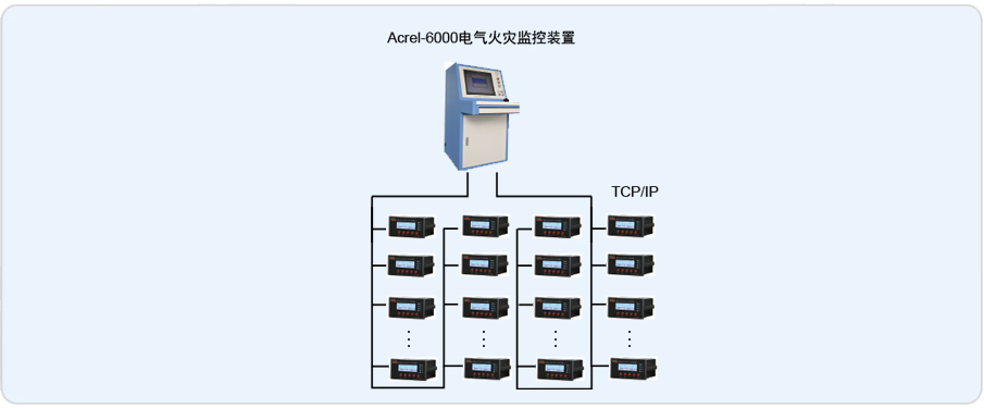本項目上現(xiàn)場配電箱內安裝ARCM200L-J1漏電火災探測器配合AKH-0.66L剩余電流互感器,消防控制室內安裝有Acrel-6000電氣火災監(jiān)控主機。安科瑞漏電火災探測器均采用Modbus-RTU通訊協(xié)議,RS-485接口,通過兩條屏蔽雙絞線連接至監(jiān)控主機。